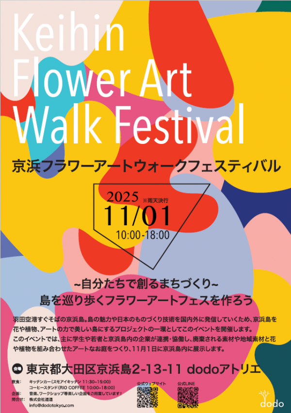 Keihinjima is located right next to Haneda Airport. This event is being held as part of a project to make Keihinjima a beautiful island through the power of flowers, plants, and art, in order to promote the island's charm and Japanese manufacturing techniques both domestically and internationally.
