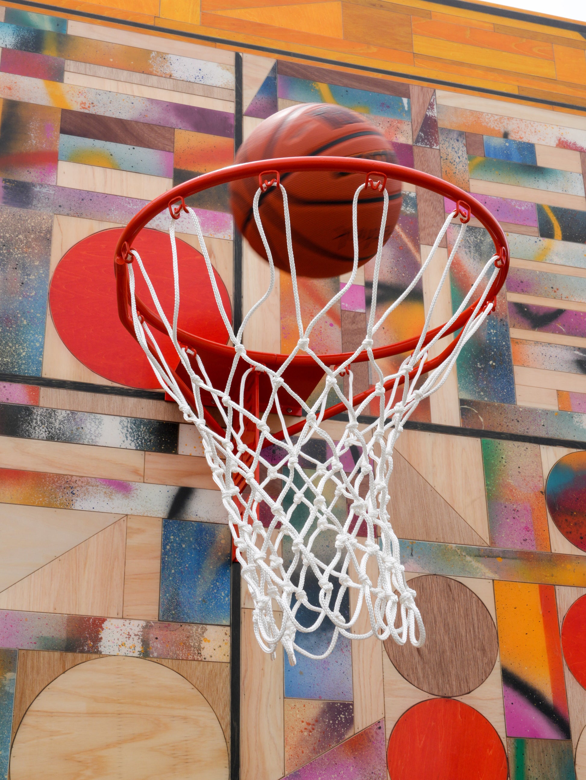 内装工事、ディスプレイ施工を行うにあたって必ず出るベニヤ材の端材や、現場で余り溜まっていくいろんな色の塗料の在庫。廃材を使って作品を制作するという今回のお話をいただいた際に、自身が直面してる一番リアリティのある廃材を使って、今後継続的に制作できる手法で作品に昇華したいと思った。