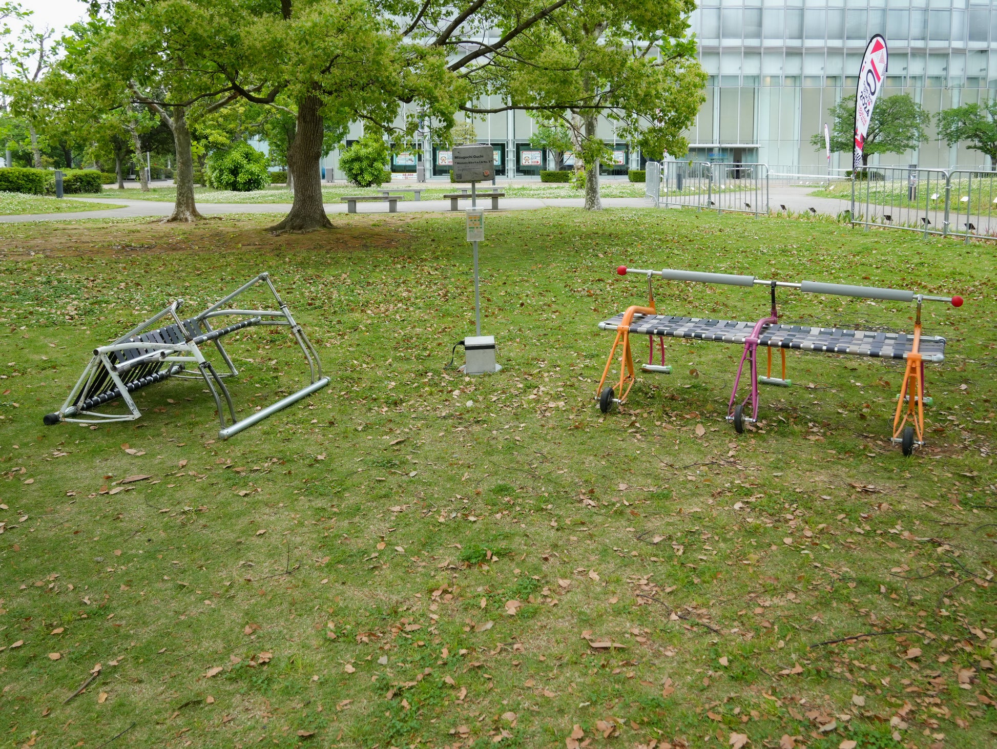 A combination repurposed bicycle and car parts were used to create a bench that you can sit on. How do you feel about your new ride?